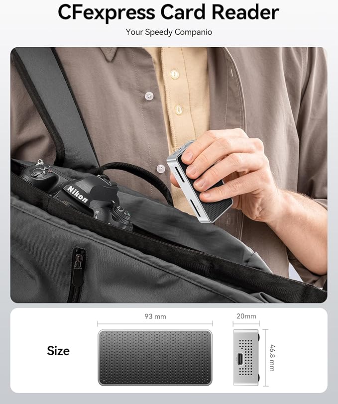 【クアッドカード同時読み取り】プロのために設計されたこの4-in-1カードリーダーは、CFexpress Type A(850MB/s)、CFexpress Type B(1500MB/s)、TFカードとSDカード(312MB/s)をサポートしています。軽量でコンパクトなデザインは、バッグやポケットに簡単に収まり、いつでもどこでもデータアクセスと転送のための信頼性の高いソリューションを提供します。