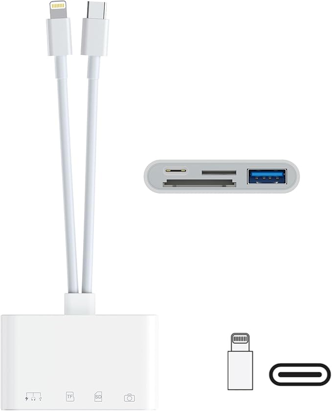4in1 iPhone SDカードリーダー 【2025新モデル MFi認証品】Lightning/USB C カードカメラリーダー USB/SD/TF変換アダプタ・SDカード・microSDカード・急速充電 | ハイレゾ音質 | データ移行保存 | 高速読み取り・転送・コピー(双方向)| 設定不要 操作不要 iPhone/iPad/PC/Androidスマホなどのデバイスに対応 | KAZESHOP