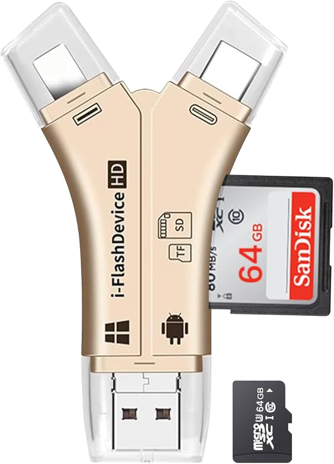 SD カードリーダー 1TB対応 バックアップ USBメモリ 写真 保存 データ スマホ マイクロSDカードリーダー SDカードカメラリーダー メモリ 写真 保存 転送 データ 移行 スマホ 高速 ノートパソコン (ゴールド) | KAZESHOP