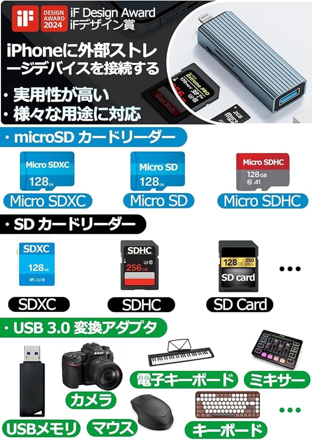 【iPhone カードリーダー・信頼できる3年品質保証】iphone sdカードリーダー 純正MIFI品質。小型・軽量デザインで外出先でも大活躍。日本国内サポートで24時間対応。カードリーダー ライトニングの決定版として、安心してお使いいただけます。