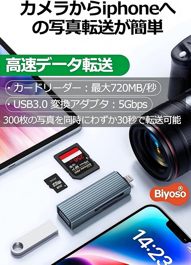 【iPhone iPad SDカードリーダー 転送】双方向高速転送・写真・動画の移動が簡単: iPhone から SD カード に 写真 を 移すこともでき、sdカード iphone 取り込みもわずか数秒で可能です。新開発のMFi認証スマートチップにより、最大5Gbps/秒(720MB/s)の高速転送を実現。sd カード リーダー iphoneとしての信頼性も抜群です。
