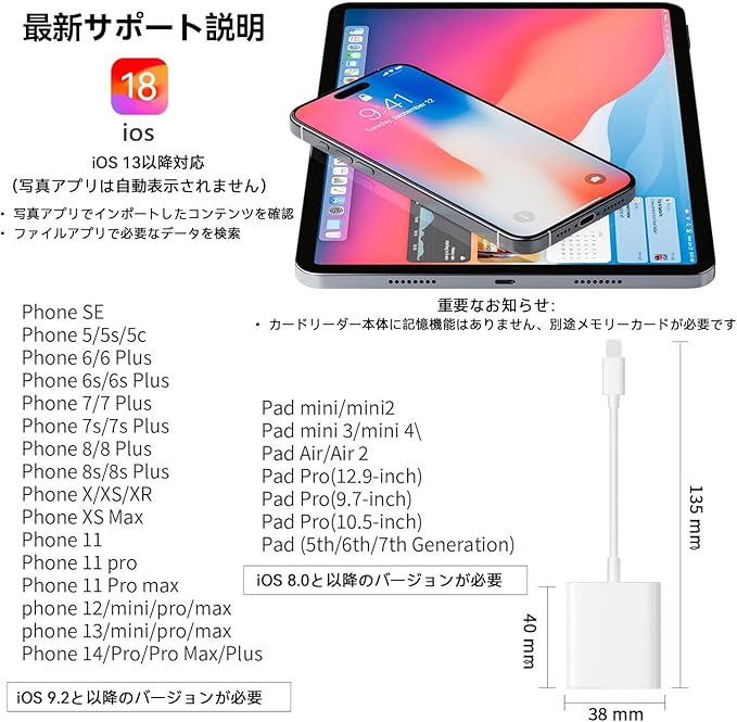 ⚡⚡【高速双方向転送・数秒で転送完成】このSDカードリーダーのデータ転送速度は360Mbps-480 Mbpsに達し、カメラの写真や動画を数秒でデバイスに転送でき、転送時間を大幅に短縮します。スマホにデータを転送するだけではなく、逆方向のスマホからSDカードへの転送もサポートします、双方向データの読み取りが可能です。(双方向転送機能はiOS13とその以降バージョンおよびAndroidデバイスで利用可能です)