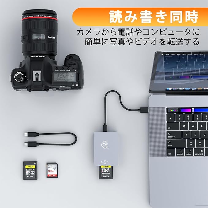 ✅【SDカードにも対応】このcfexpress typea カードリーダーはCFexpress Type Aカードだけでなく、SD/SDHC/SDXC/UHS-Iカードにも対応。複数のメディアを1台で扱えるため、写真家やビデオグラファーにとって非常に便利です。プラグアンドプレイ設計でドライバ不要、ホットスワップ機能によりカードの入れ替えもスムーズ。外出先でも快適にご利用いただけます。