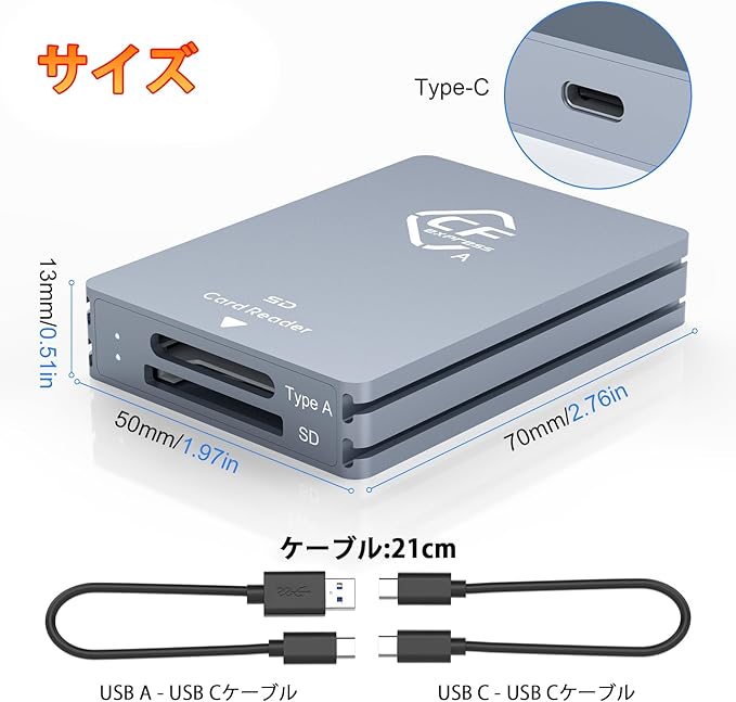 ✅【CFexpress Aメモリーカード専用設計】本カードリーダーはCFexpress(タイプA)メモリーカード専用に開発されており、写真や動画の高速転送に最適。CFexpressカードを使用するクリエイターやカメラ愛好家にとって、信頼できる便利なアイテムです。