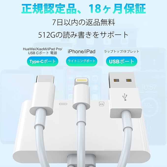 ✅【広い互換性】このiPhone sd カード リーダーは、USB C、Lightning、USB Aインターフェイスを持つすべてのデバイスをサポートし、標準的な写真フォーマット、JPER、RAW、SD、HDビデオフォーマットに対応しています。対応OTG機能付きノートPC、iPhone 15/15 pro/15 pro Max/14/14 pro/14 pro Max/13/13 Mini/13 pro/13 pro Max/12/12 Mini/12 pro/12 pro Max/11/11 pro/11、MacBook、Mac-Book Pro、ChromeBook、Dell XPS、Androidスマートフォン、i-Pad Pro、SONY XPERIA、Galaxy、Google Pixelなどのデバイス。 Mac OS、IOS、Android、Windowsおよび他のシステムをサポートし、1つのメモリーカードリーダーですべての転送ニーズを満たすことができます。