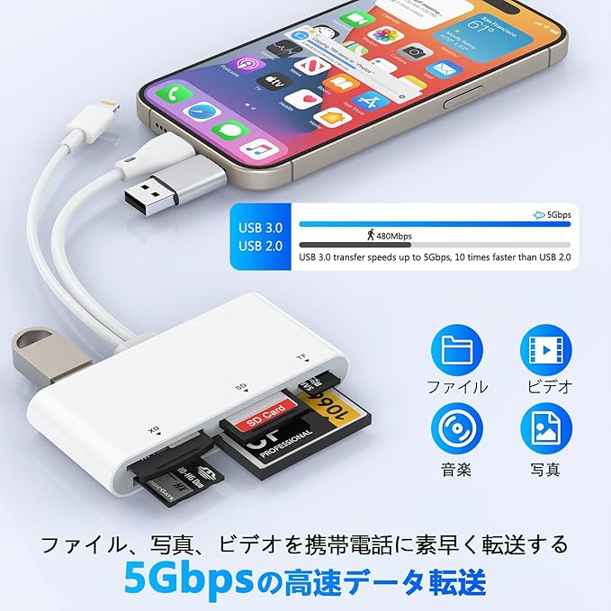 【双方向コピー対応】AppleとAndroid、およびPCデバイスは双方向データ転送をサポートしています。iOS13以降では、SDカード→iPhoneだけでなく、iPhone→SDカードへの書き込みも可能。旅行や撮影後のバックアップに最適。
