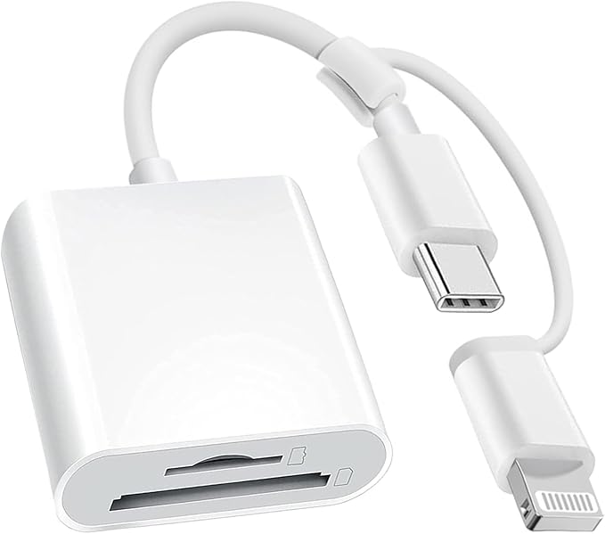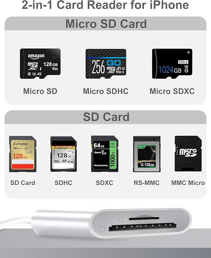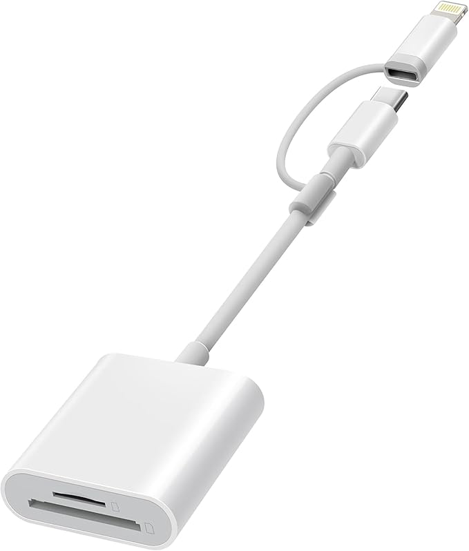 【2025年最新モデルのカードリーダー】この 2 in 1 の Type-c/lightning SD カードリーダーは、1 つの SD カードポート(SD/SDHC/SDXC/RS - MMMC/MMMC - Micro カード対応)と 1 つの TF カードポート(Micro SD/Micro SDHC/Micro SDXC カード対応)を備えています。お持ちの SD カードまたは microSD カードをカードリーダーに挿入し、スマートフォンに接続するだけで、すぐに使えます。専用アプリをインストールする必要もありませんので、とても簡単に操作できます。これを使えば、SD カードに保存されている写真やビデオを簡単にスマートフォンにダウンロードすることができます。