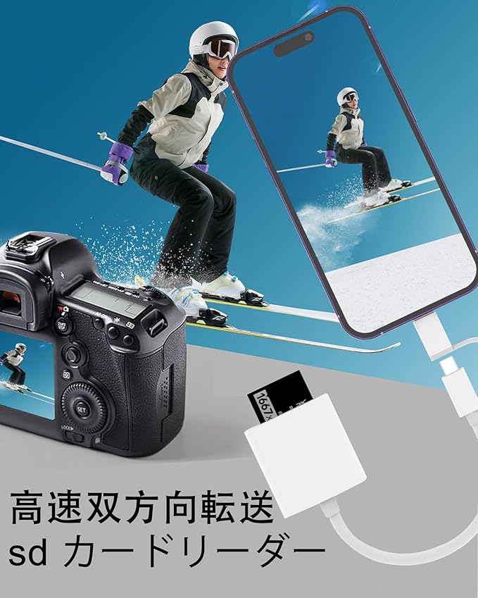 【アプリ不要、簡単操作】専用アプリもインターネットも必要ありませんし、データ通信制限を心配する必要もありません。カードリーダーを接続するだけで、デジタルカメラで撮影した写真を簡単にスマートフォンやコンピュータに転送することができます。小型で軽量で、ケーブルも短いので、持ち運びがとてもしやすいです。コンパクトで軽量なデザインで、いつでも持ち運びができます。OTG 機能を備えているので、コンピュータがなくても、すぐにデータを転送することができます!旅行中に家族や友人と大好きな写真やビデオをシェアしたり、ソーシャルメディアアプリで投稿したりするのに最適です。出張中にも、簡単にカバンに入れることができます。写真愛好家にとっては、最高の選択肢です。【3年間安心保証】販売者は36か月の品質保証と7日間の質問なしの返金を提供します。お問い合わせ方法:アカウントサ一ビス → 注文履歴 →ご注文 →「出品者」→「出品者に連絡」。画像説明や文字説明など詳しい日本語説明書が付いております。