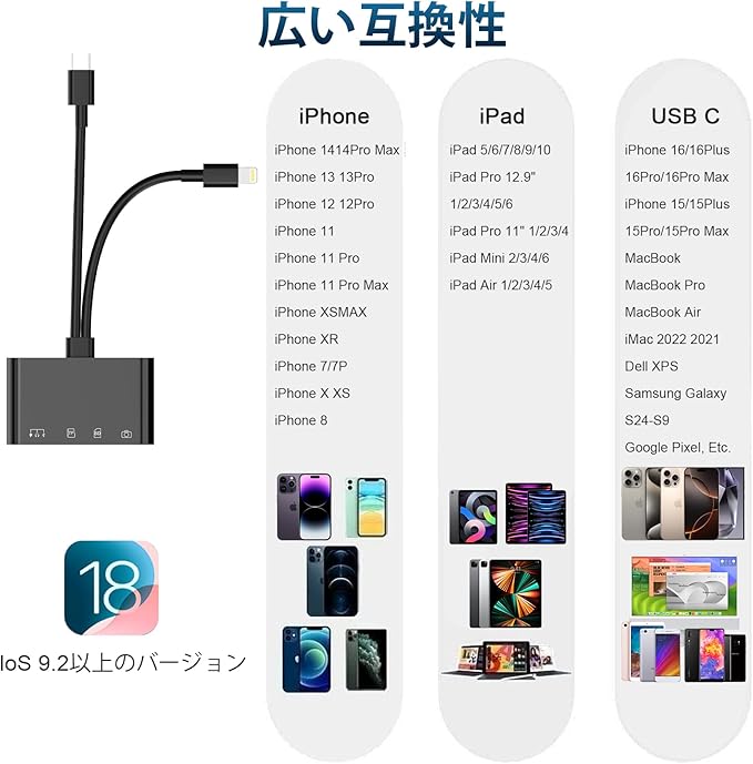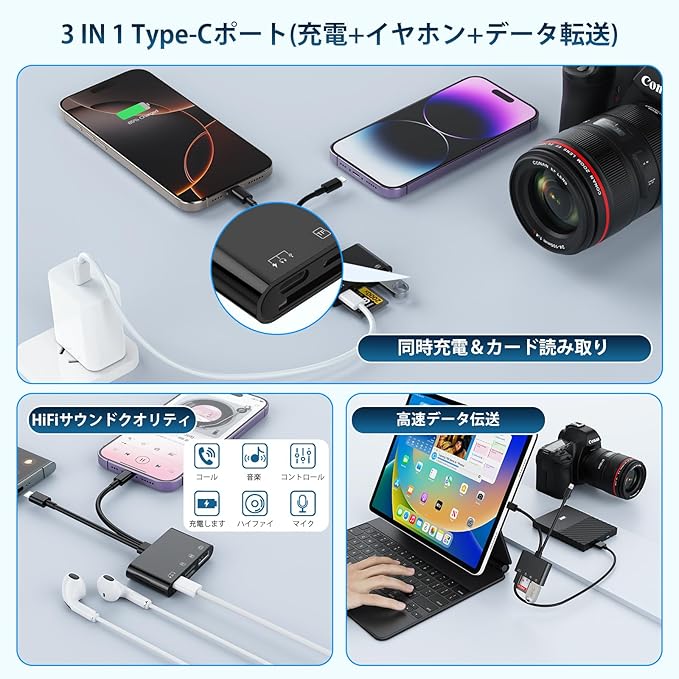 【フル装備のType-Cポート、よりパワフル】iPad sdカードリーダーのType-Cポートは3つの機能(高速データ転送、急速充電、音楽鑑賞)をサポートしており、通常のマイクロsdカードリーダーの充電機能1つよりも強力で、さまざまなニーズに完全に対応します。