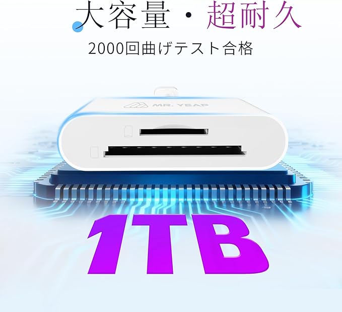 【2in1カードリーダー】このカードリーダーはSDカードポートとTFカードポートを両方搭載しているため、対応するカードを直接挿入するだけで、ファイルの同期、転送、共有を手軽に実現できます。*このカードリーダーは、SDカードとTFカードは同時にお使いいただけません。ご利用の際は、どちらか一方のみをご挿入ください。