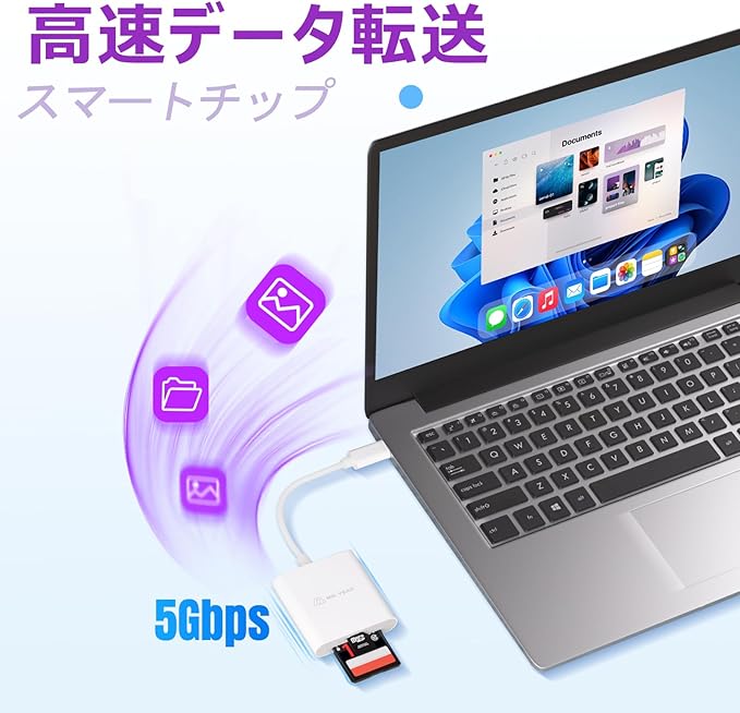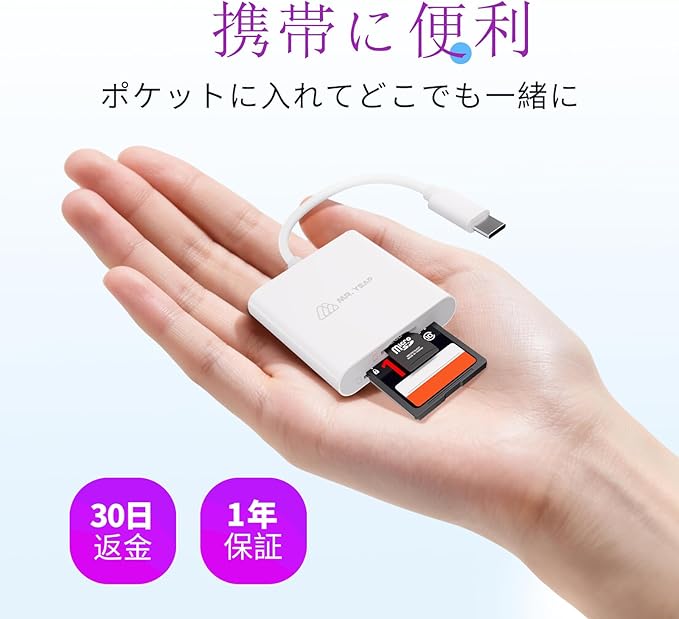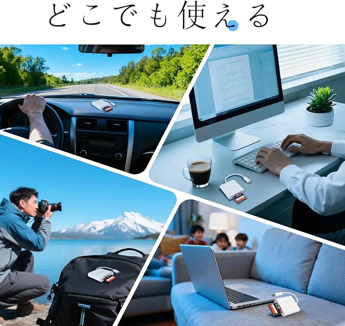 【簡単操作、プラグ&プレイ】このUSB-Cカードリーダーはわかりやすい説明書付きなので、すぐに使い始められます。デバイスに接続するだけで、アプリや面倒な設定は一切不要。煩わしさから解放され、素早くファイルにアクセスして転送できます。*このカードリーダーはメモリカードを含みません。
