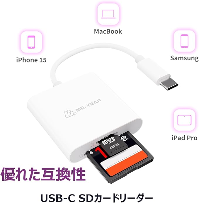 【幅広い互換性】このカードリーダーは、Type-Cポートを搭載したAndroid、iPhone、Windows、Mac、iPadなど、Type-C搭載の多様なデバイス間で、シームレスなデータ交換を実現します。