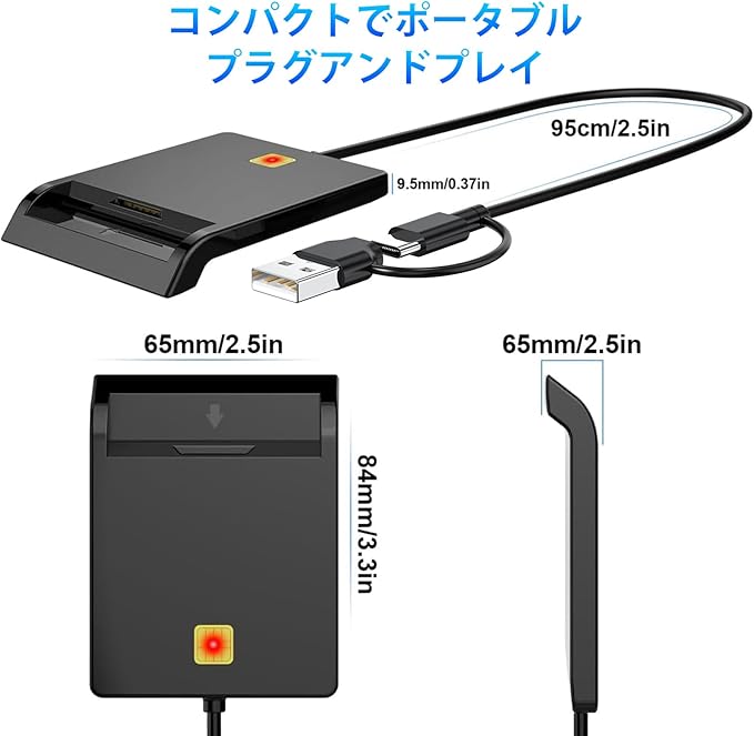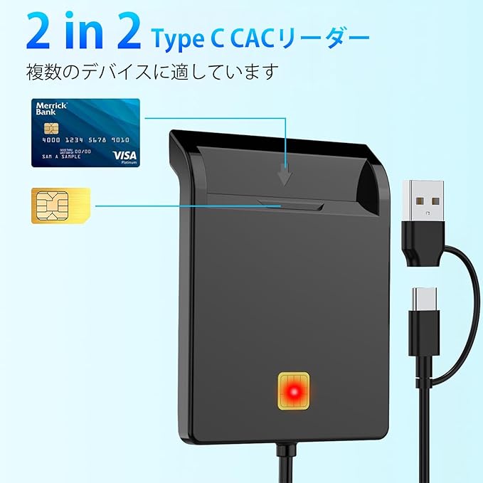 【2025安定高速版】2 in 2 ICカードリーダー 接触型 軽量 マイナンバー対応 マイナポイント申請 確定申告 納税システム e-Tax対応 CAC カード リーダー USB スマート リーダー、CAC リーダー DOD ミリタリー USB A/Type C ID カード リーダー USB ユニバーサル互換性 SIM カード リーダー Windows、Mac OS、Linux、Android | KAZESHOP