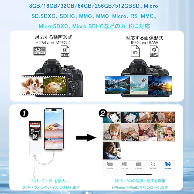 SDカードリーダー 【2025新登場】2in1 i-Phone/Type-c TF SD microSD 変換アダプタ USB3.0 双方向 高速伝送 SD/TF変換アダプタ 最大1TB対応 写真/動画/データ保存 OTG機能 設定不要 i-phone/i-pad/IOS/Windows/Android最新IOS18.. | KAZESHOP