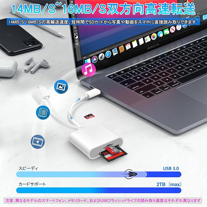 対応カード: TFカード/microSDカードの読み取りに対応、最大1TBまでの大容量に対応