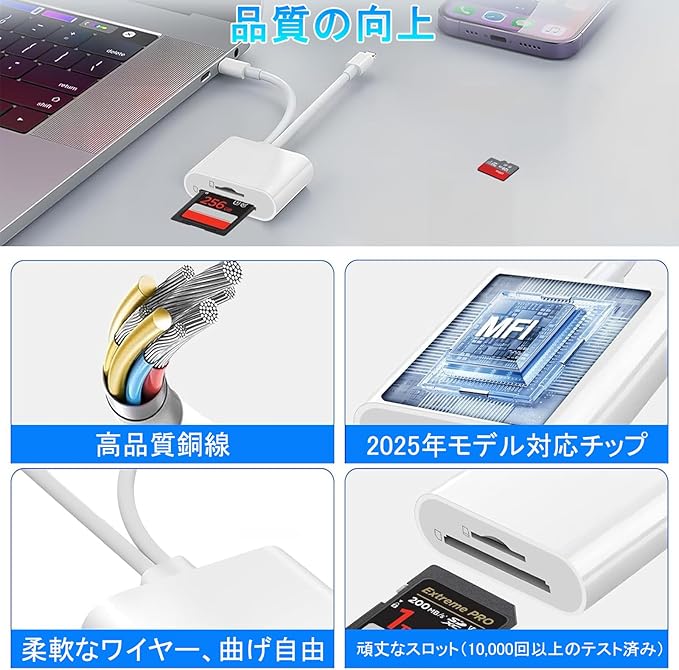 コンパクト設計: 持ち運びに便利な小型サイズで、外出先でも手軽にデータ転送が可能