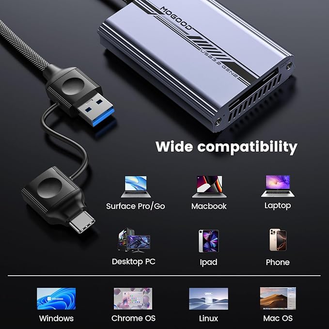 MOGOOD CFexpressカードリーダー、USB 3.2 10Gbps CFexpress Tyep Bカードリーダー、iPhone 15 Pro、iPad Pro、PC、ラップトップ、スマートフォン、タブレットコンピュータと互換性のあるUSB Cポータブルアルミメモリカードアダプター | KAZESHOP