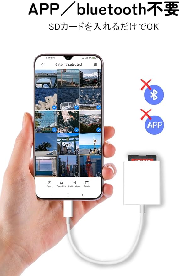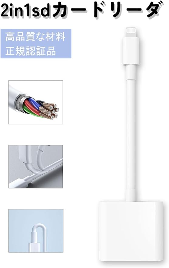【最新SDカードリーダー】当社より最新開発のSDカードリーダーは、MFi認証チップを搭載し、高品質な材料で製作しました。写真やビデオ、ファイルなどをスムーズに転送できます。