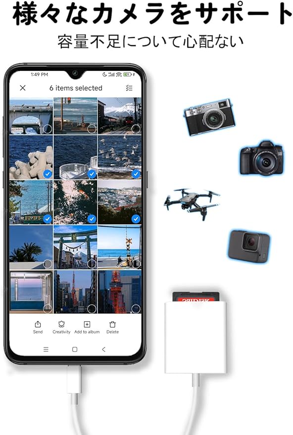 【簡単操作】OTGに対応し、カードを挿入後わずか5秒でレスポンスします。インターネットや第三者アプリ、ドライバーは不要です。デジタルカメラで撮影した動画や写真の閲覧、削除、共有が簡単に行え、WIFIを使用する場合よりも時間を節約できます。
