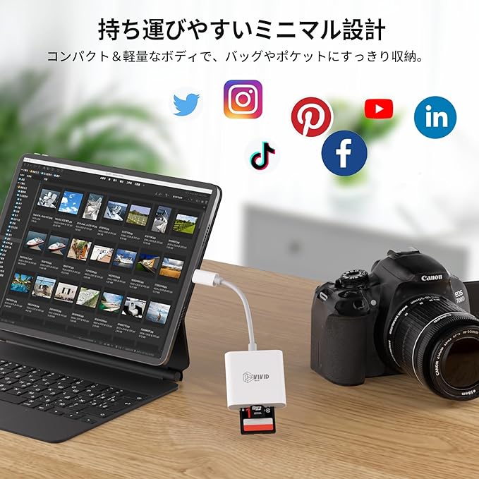 【超高速伝送】最新のスマートチップを搭載したsd カードリーダーは、USB TYPE-Cポートを通じて超高速データ転送を実現し。VIVID TECHのsd カードリーダーは、品質の高いコンテンツの取り扱いでも遅延なくスムーズに作業できます。写真の高速ダウンロード、スムーズな動画編集、迅速なファイル転送をお楽しみください。