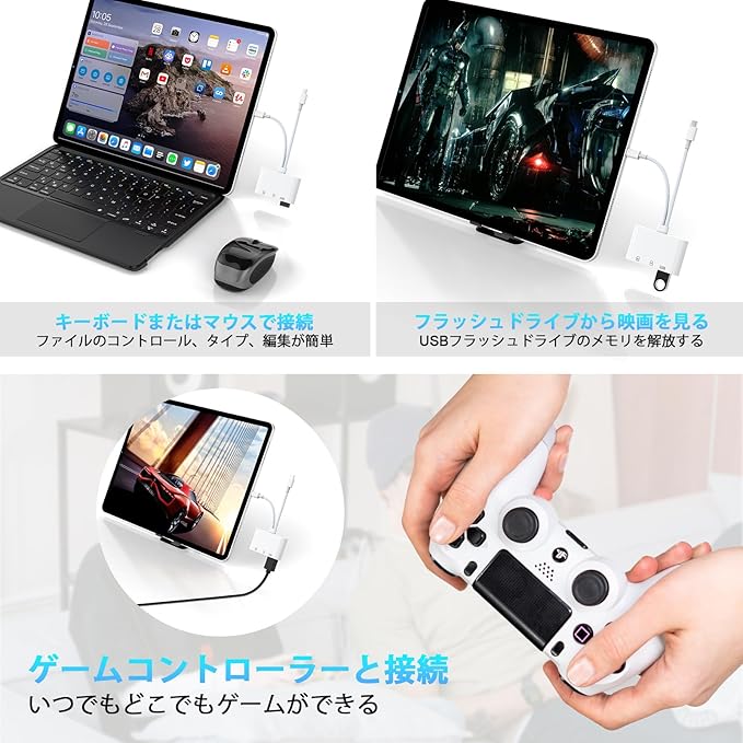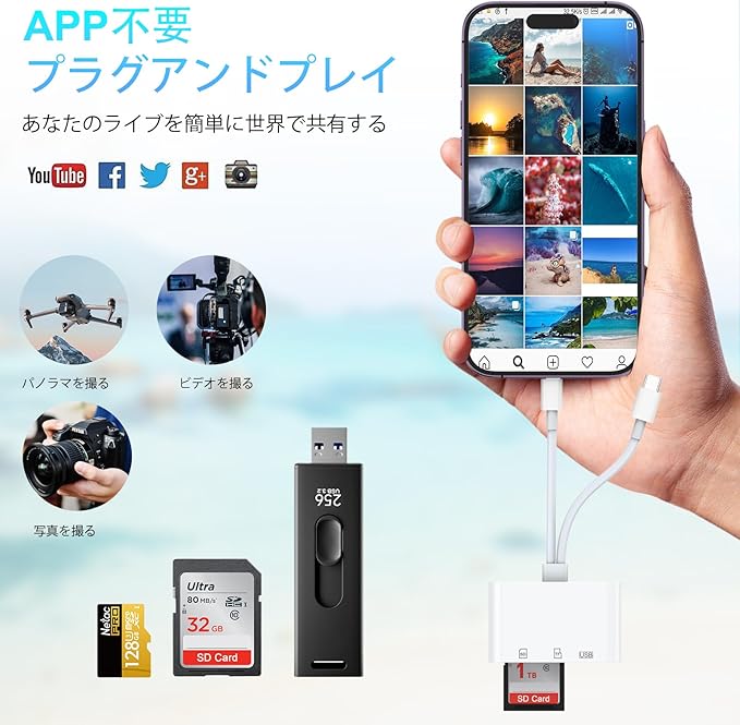 【幅広い互換性】 iPhone カードリーダーはUSB CとLightningポートを搭載し、iPhone/iPadのフルレンジをサポートし、USB CデバイスはiPhone 15/15 Plus/15 Pro/15 Pro Max/14/13/12/Max/Pro/11/Pro/Max/Xs/Xs Max/Pad Air/ Mini/Pro、MacBook Proなど。 カードリーダーはiOS/Windows/Mac OSなどとも互換性があります。