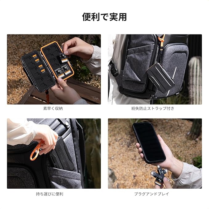K&F CONCEPT 2in1 カードリーダー&収納ケース 4in1高速転送対応 SD/TFカード計36枚収納 防水防塵 iPhone/Android/PC/Mac/iPad対応 ストラップ付き | KAZESHOP