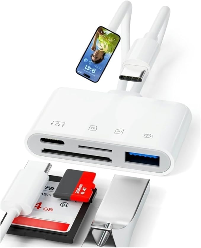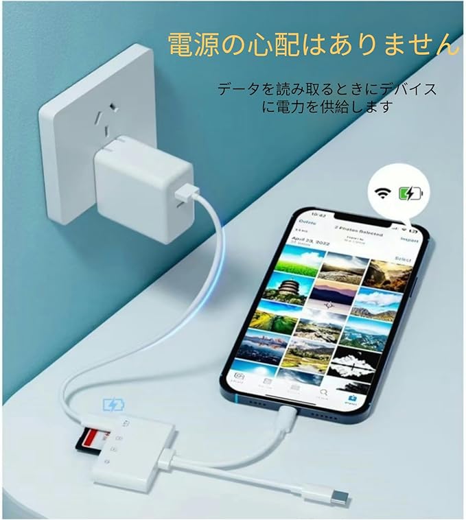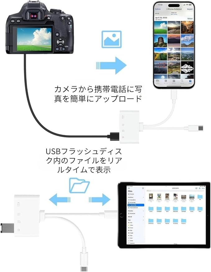 【幅広いカード互換性】iPhone/iPadとUSB-Cデバイス用のこのカードリーダーは、スピードと利便性で簡単にほとんどすべてのメモリカードを読み取ることができます。SDXC/SDHC/SD/MMC/RS-MMC/マイクロSD/TF/マイクロSDXC/マイクロSDHC/UHS-Iメモリーカードをサポートします。また、追加のUSBポートは、USBフラッシュドライブ、Uディスク、ハードドライブ、キーボード、マウス、プリンタなどで動作することができます。