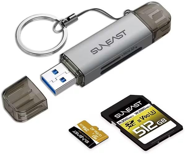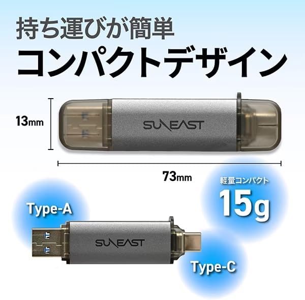 SUNEAST SD MicroSD UHS-I デュアルスロート カードリーダー USB3.2 Gen1 Type-C Type-A キーホルダー付き UHS-I DDR200 カード対応 最大転送速度170MB/s コンパクト 小型 携帯便利 ロープ付き 国内正規品 | KAZESHOP