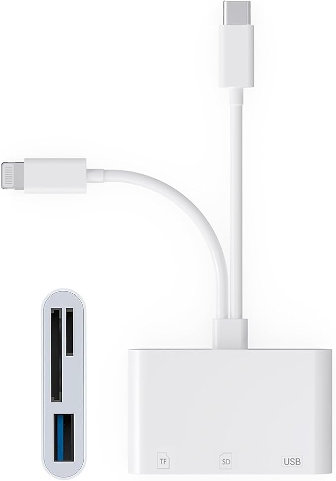 【3in1 iPhone カードリーダー】SD カードリーダーは最新の2025 MFI認証チップを搭載し、異なる機能を持つ3つのポート(SDカードポート、TFカードポート、USB 3.0)を備えています。 一般的な用途:カメラの写真転送、機種変更時のデータ転送、ファイルの保存、音楽鑑賞、USBやその他の周辺機器の使用。