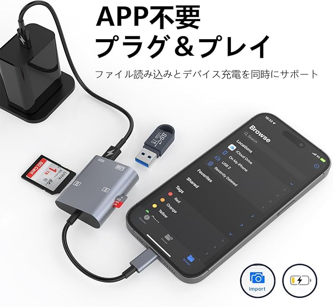 ⚡【簡単接続】APPなどの設定が不要、SDカードをiPhone カードリーダーに差し込むとiPadやiPhoneの写真/ファイルアプリケーションで確認できます。SDXC / SDHC / MMC / SD / Micro SD / Micro SDXC / Micro SDHC / TF 等メモリーカード対応します。マイクロSD/SDカード:最大1TBまでをサポート。