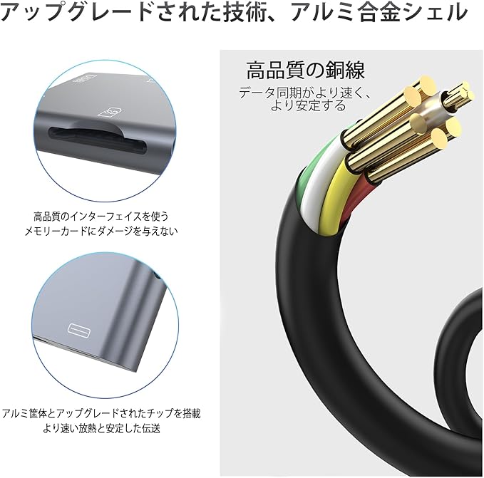 ⚡【効率的で迅速な放熱】カードリーダーは、耐久性に優れ、データ伝送時の発熱問題を効果的に解決することができるアルミ合金シェルで作られており、通常のプラスチックカードリーダーの3倍以上の放熱効率を向上させます。 効率的な放熱は、データ伝送の安定性を向上させるだけでなく、メモリカードを保護します。