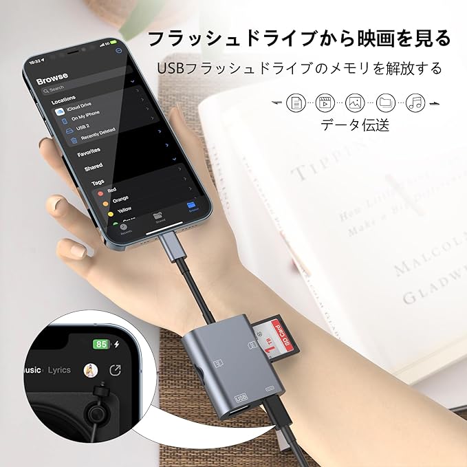 ⚡【MFiチップ高速データ転送】新世代のMFi認証チップは、読み取りおよび転送速度が720MB/秒に達します,TF/SDカードの転送と読み取りは、より安定して高速です。また、MFi認証チップはUSB 3.0の読み取り/転送速度が5Gbpsとなっている,USBスティックの転送速度は従来の2倍になり、他のUSB周辺機器との互換性も向上した。