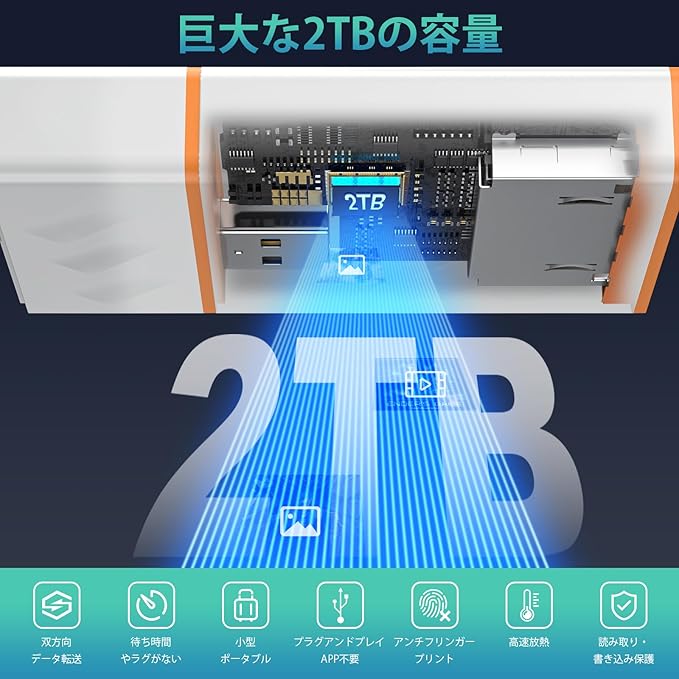 【究極の携帯性】Quanlexカードリーダーは、先進的な着脱式デザインを採用し、全体が赤ちゃんの手の大きさです。 市場で最もコンパクトなCFexpressカードリーダーで、外出先での写真撮影に最適です。