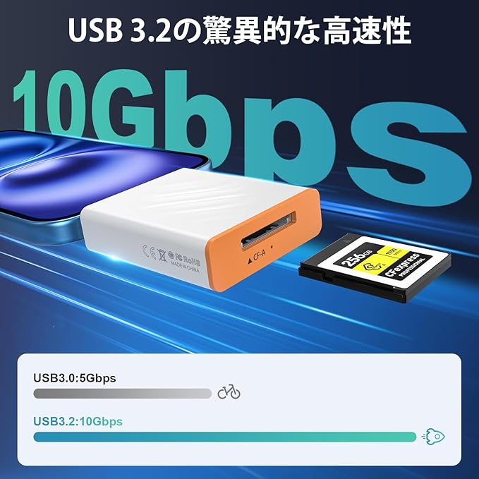 【10 Gbps高速データ転送】Quanlex CFepxpress カード リーダーは、CFexpress (タイプ A) メモリ カード用に特別に設計されており、CFexpress カードの USB3.1 Gen2 (10Gpbs) 超高速データ転送をサポートします。 CFexpressカードを使用して写真やビデオを撮影した後、4Kや8Kなどの高品質の画像やビデオを高速かつ安定して転送します。