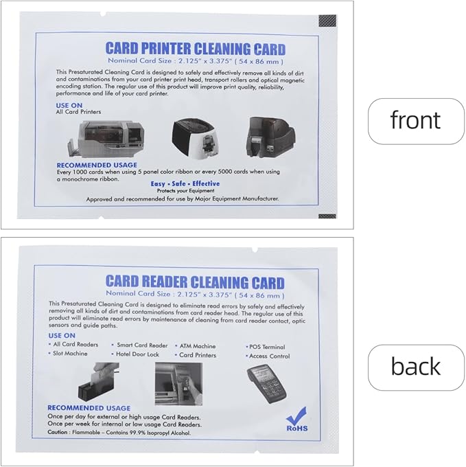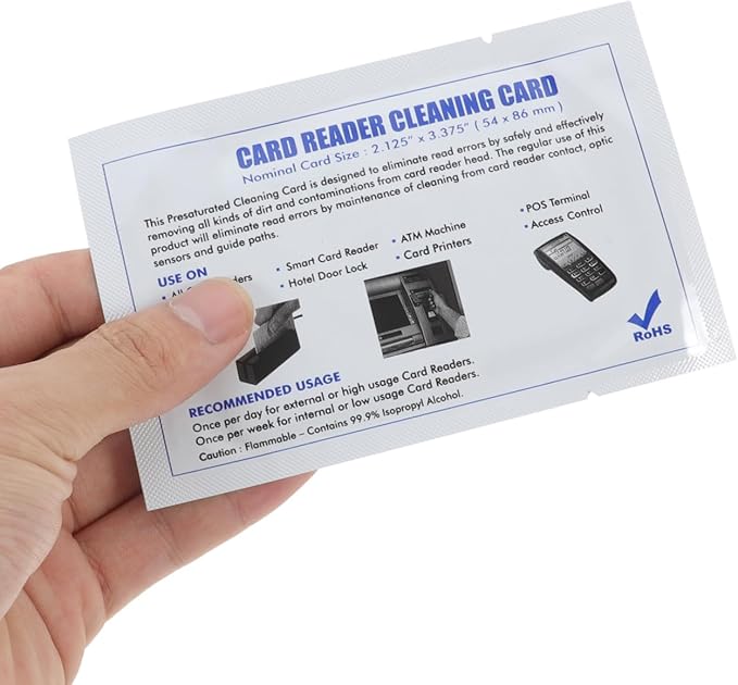 カードリーダークリーニングの専用設計: このクリーニングカードはPOSターミナルやクレジットカードマシンの磁気および光学リーダーヘッドに付着した汚れや塵をに除去し、機器の性能維持と寿命延長に寄与します。