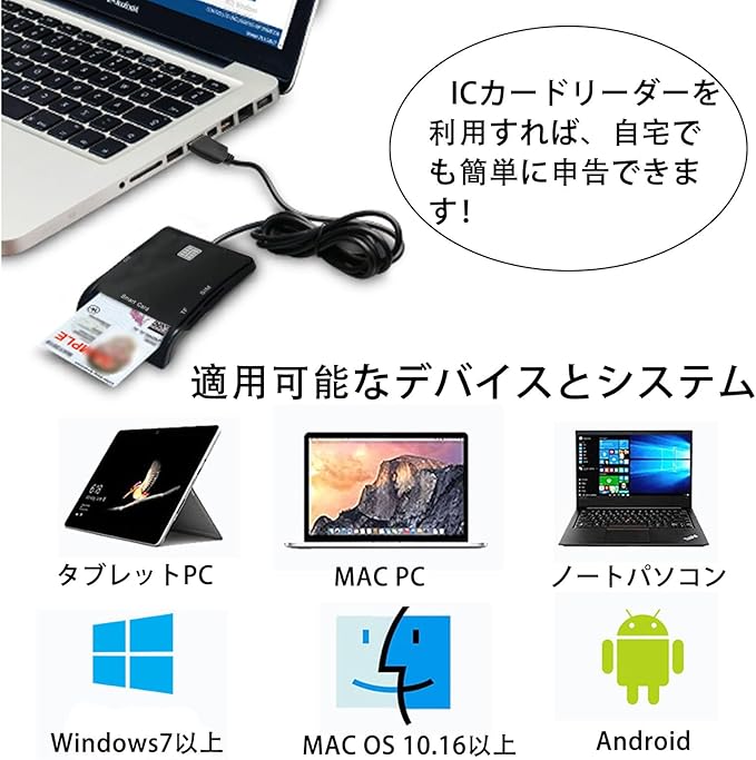 カードリーダー簡単操作:パソコンのUSBポートに挿すだけで簡単に使用可能!ドライバ不要で自動認識 され、初心者の方でも安心 してお使いいただけます。この ICカードリーダー は、デジタル認証やオンライン決済、税金業務から水道・電気料金の支払いまで、多彩な用途に対応可能です。あらゆるスマートカード操作をサポートします。一部の用途では対応アプリやシステムの連携が必要ですが、簡単な手順でセットアップできます。