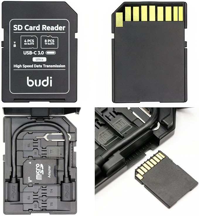 大容量収納: 最大4枚のSDカードと8枚のmicroSDカード、合計12枚のカード同時に収納可能