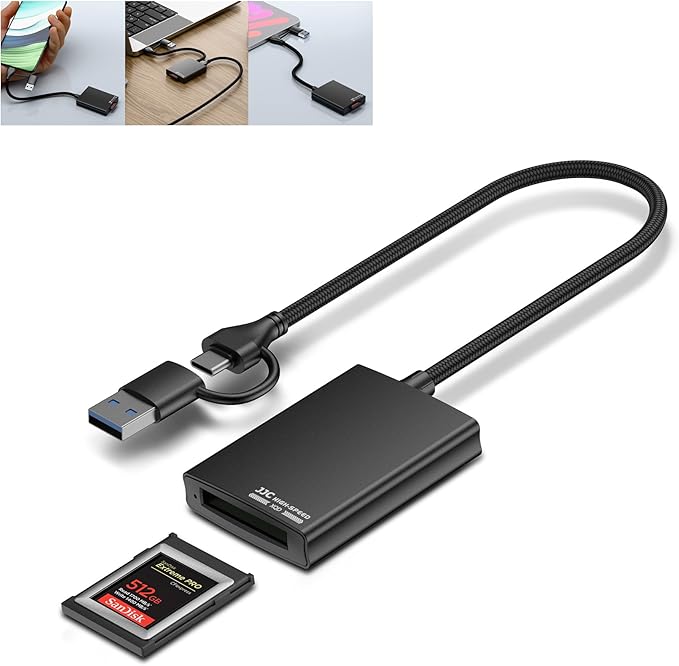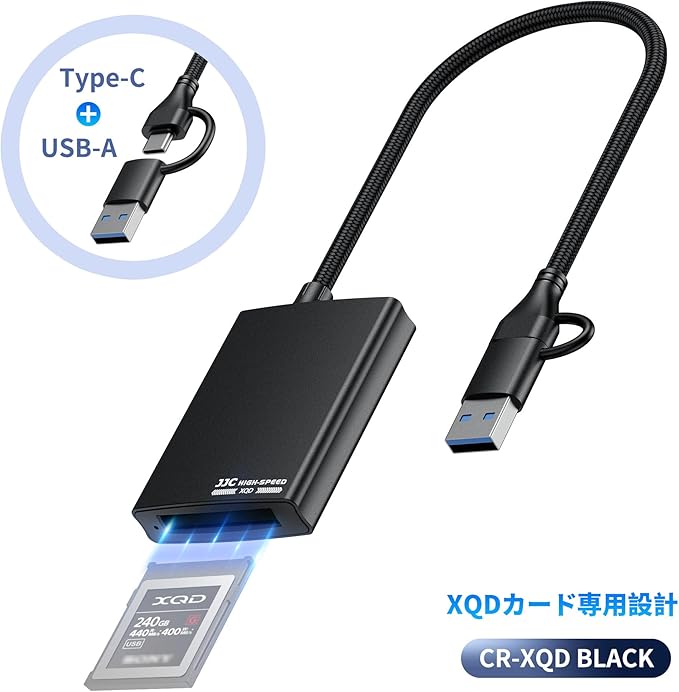 JJC XQD 専用カードリーダー USB 3.1 Gen1 高速 5Gbps USB-C/USB-A 2-in-1 設計 Android/Windows XP/Vista/7/8/8.1/10/11/Mac OS(M1&M2 CPU搭載システムを含む)/iOS/IPhone 15シリーズ携帯電話/デスクトップパソコン/ノートパソコン との互換性 | KAZESHOP
