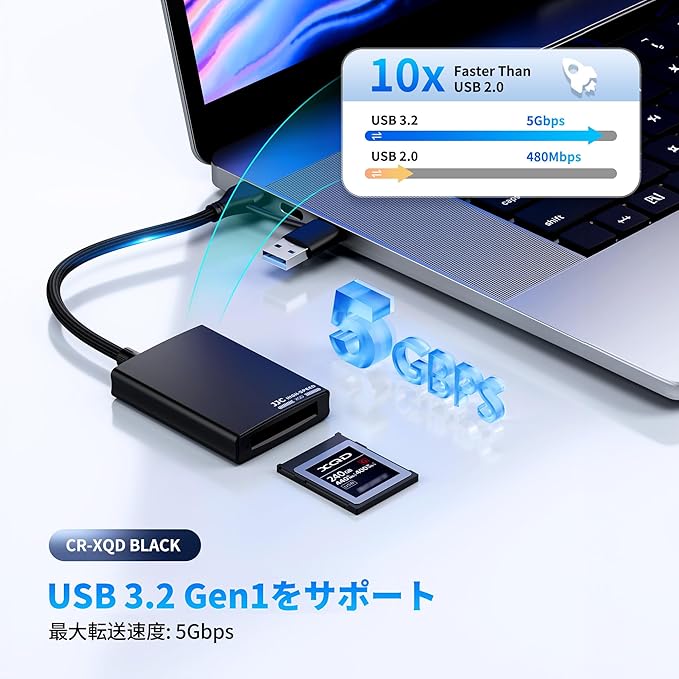 【5Gbpsの超高速データ転送】USB 3.1 Gen 1テクノロジーは、最大転送速度5Gbps、XQDの読み取りと書き込みの高解像度写真、フルHDビデオをXQDカードから素早く読み取りできます。