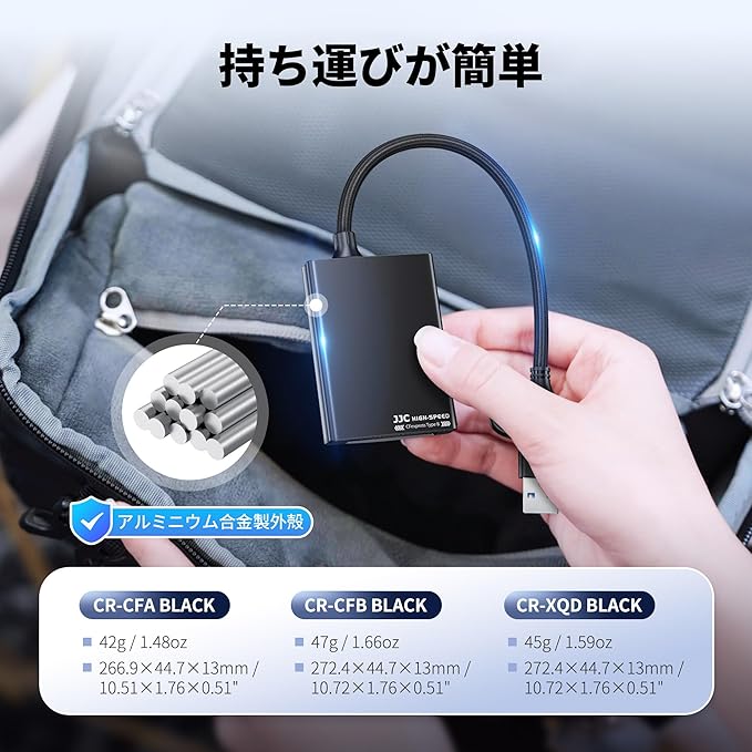 【アルミコンパクト設計】XQDカードリーダー、アルミニウム合金素材、ハイエンドなファッション外観と高速放熱により、XQDはより丈夫で高品質になります。