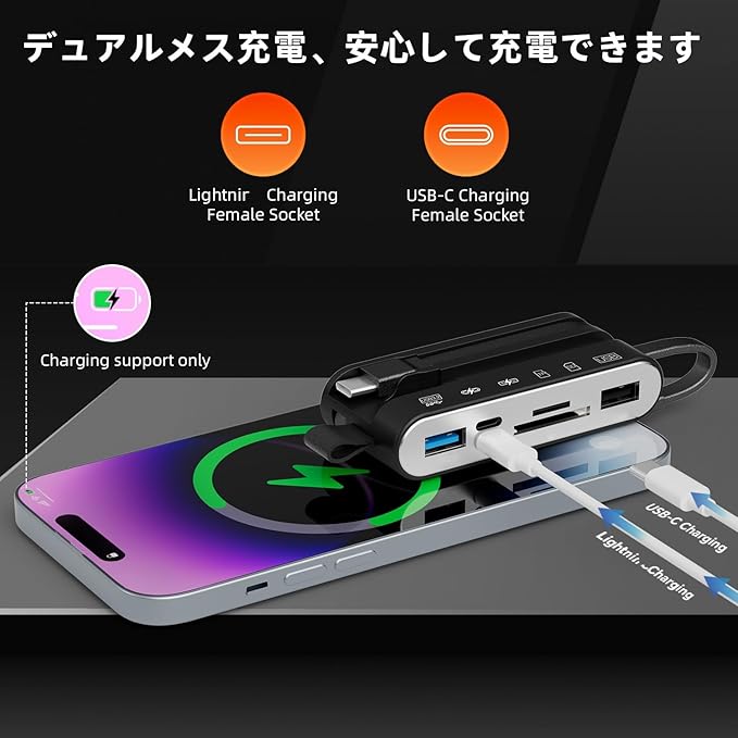 特徴 6in3、OTG機能、高速データ転送、充電しながら働く