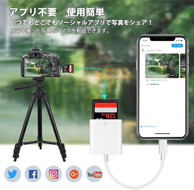 【アプリ不要 操作簡単】 専用アプリやインターネット不要でデータ通信制限を気にすることなく、カードリーダー本体を挿すだけでデジタルカメラから直接データ転送することが可能なので、余計な手間をかけずに素早く作業することができます。