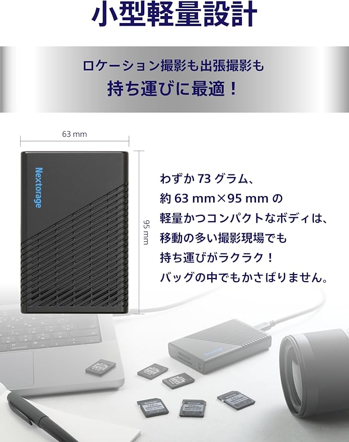 小型軽量設計:わずか73グラムの小型軽量ボディは、ロケーション撮影や出張撮影などの移動が多い場面での携帯性に優れています。