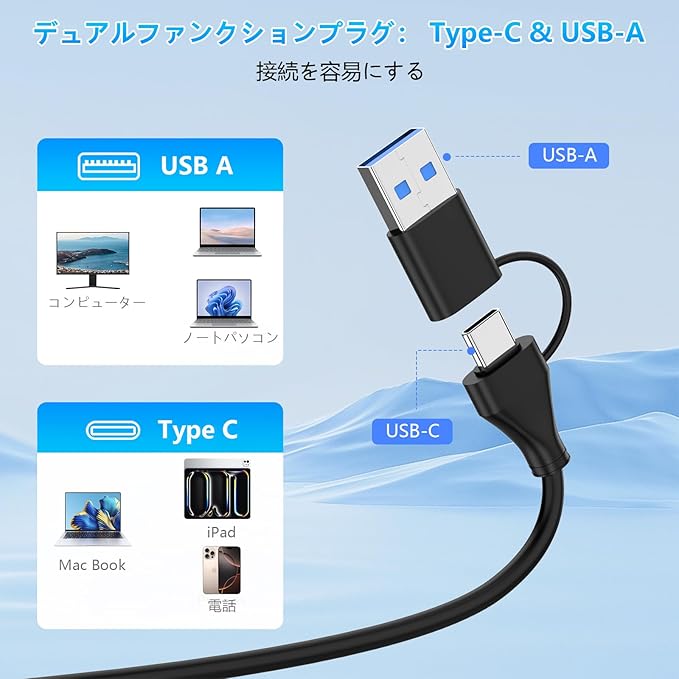 【Type-C/USB-A 2in1設計】このCFexpress カードリーダーはUSB-CとUSB-Aの両方に対応し、最新のThunderbolt 3互換ポートや従来のUSB 3.0ポートでも使用可能。ノートPCやデスクトップなど幅広い環境で簡単に接続でき、持ち運びにも便利な設計です。