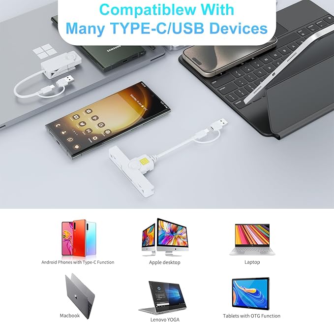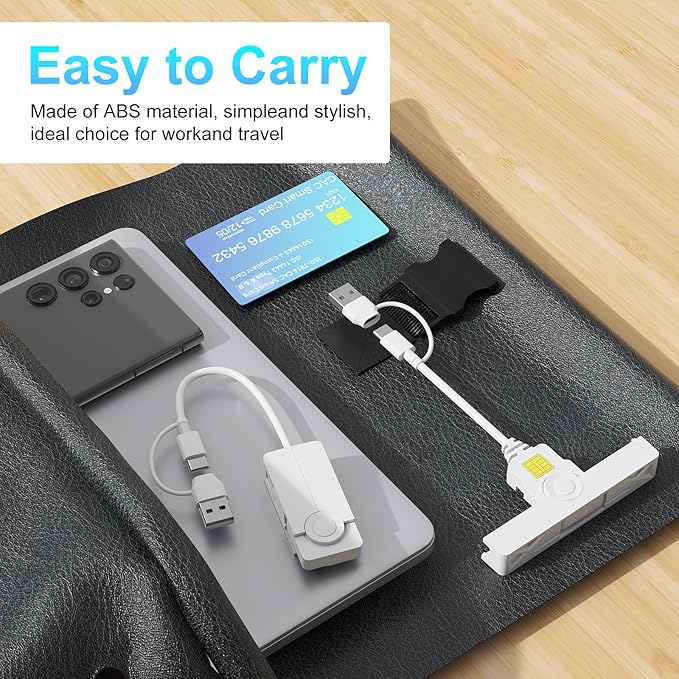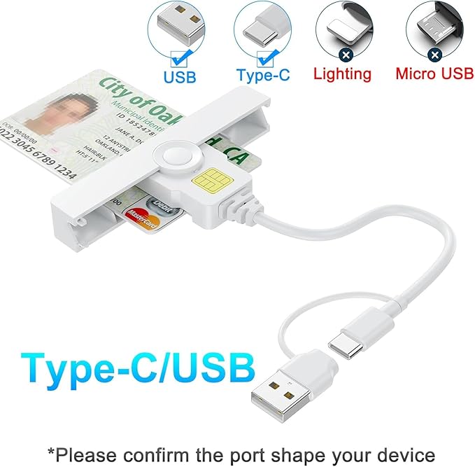 USB + USB-C CACカードリーダー、2-in-1 ミリタリー DOD 共通アクセススマートカードリーダー、Windows、Mac OS、Linux対応、ポータブルで折りたたみ可能なデザイン | KAZESHOP