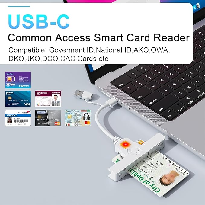 【幅広い互換性】Windows、Mac OS、Linuxに対応し、Government ID、ActivClient、AKO、OWA、DKO、JKO、NKO、BOL、GKO、Marinenet、AF Portalなど、幅広いスマートカードに対応しています。軍人、政府職員、そして複数のシステムへの安全なアクセスを必要とする専門家に最適です。