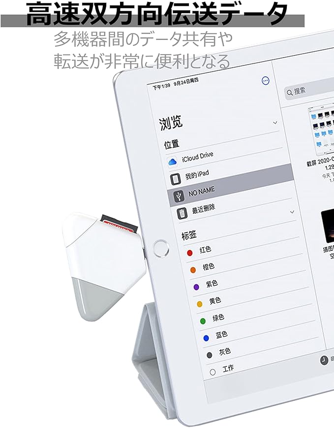 専用APPインストール不要 --- 専用によって開発したAPPの欠点として、アプリストアに撤去される可能性があることや不安定が挙げられる、当社製品の場合、専用APPインストール不要で、iOSユーザーが「ファイル」APPを使ってそのまま読取可能としている、このAPPはiOS13バージョンから追加された純正のファイル管理APPであり、よって、iOS機器をiOS13へアップデートだけで、USBやType C機器をそのまま読取可能である、追加の設定や操作は必要ありません。接続後すぐにデータを確認して転送できます