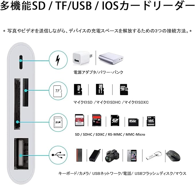 【最新型改良】iPhone/iPadに適用 SDカードリーダー 4in1 USB OTGカメラアダプタ SD TFカードリーダー 写真 ビデオ キーボード 双方向 高速データ転送(IOS用) | KAZESHOP