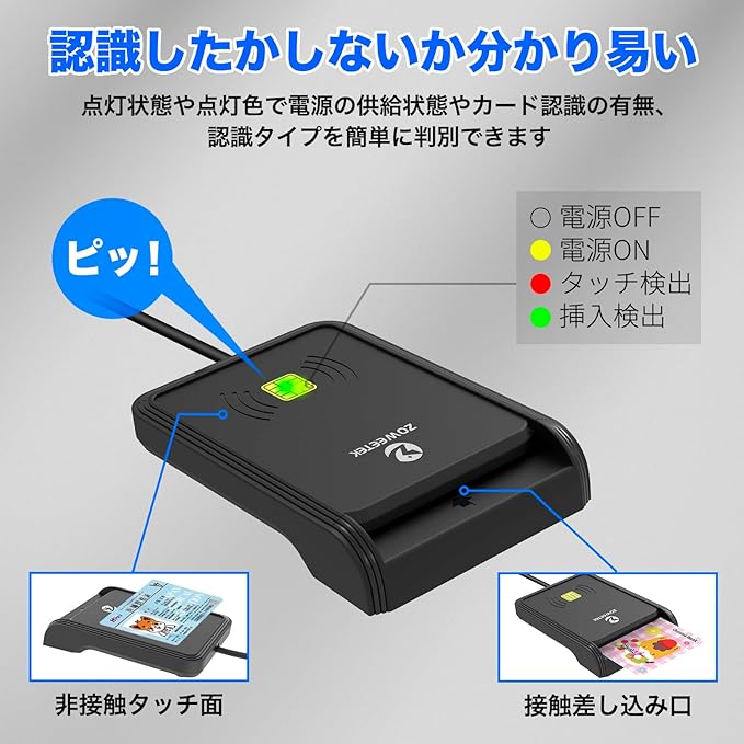 ZOWEETEK 非接触/接触両対応 ICカードリーダー マイナンバーカード/電子車検証/e-Tax公式対応 USB-A接続 コンパクト設計(Windows・Mac自動認識・ブラック) | KAZESHOP