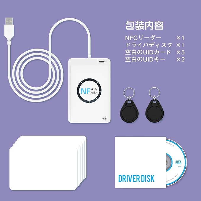 【包装リスト】包装には1つのACR 122 Uカードライタ、5つの空白UIDカード、2つのブラックキーカード、1つのSDKが含まれています。技術サポートの下で二次開発が可能です。SDKには電子説明書が含まれています。 この製品にはソフトウェアは付属していません。 サードパーティが提供するアプリケーションが必要です。